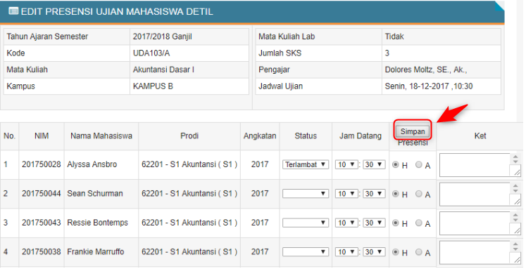 Menu presensi ujian mahasiswa ini digunakan untuk mengisi kehadiran mahasiswa pada saat ujian supaya terdata di siakad
