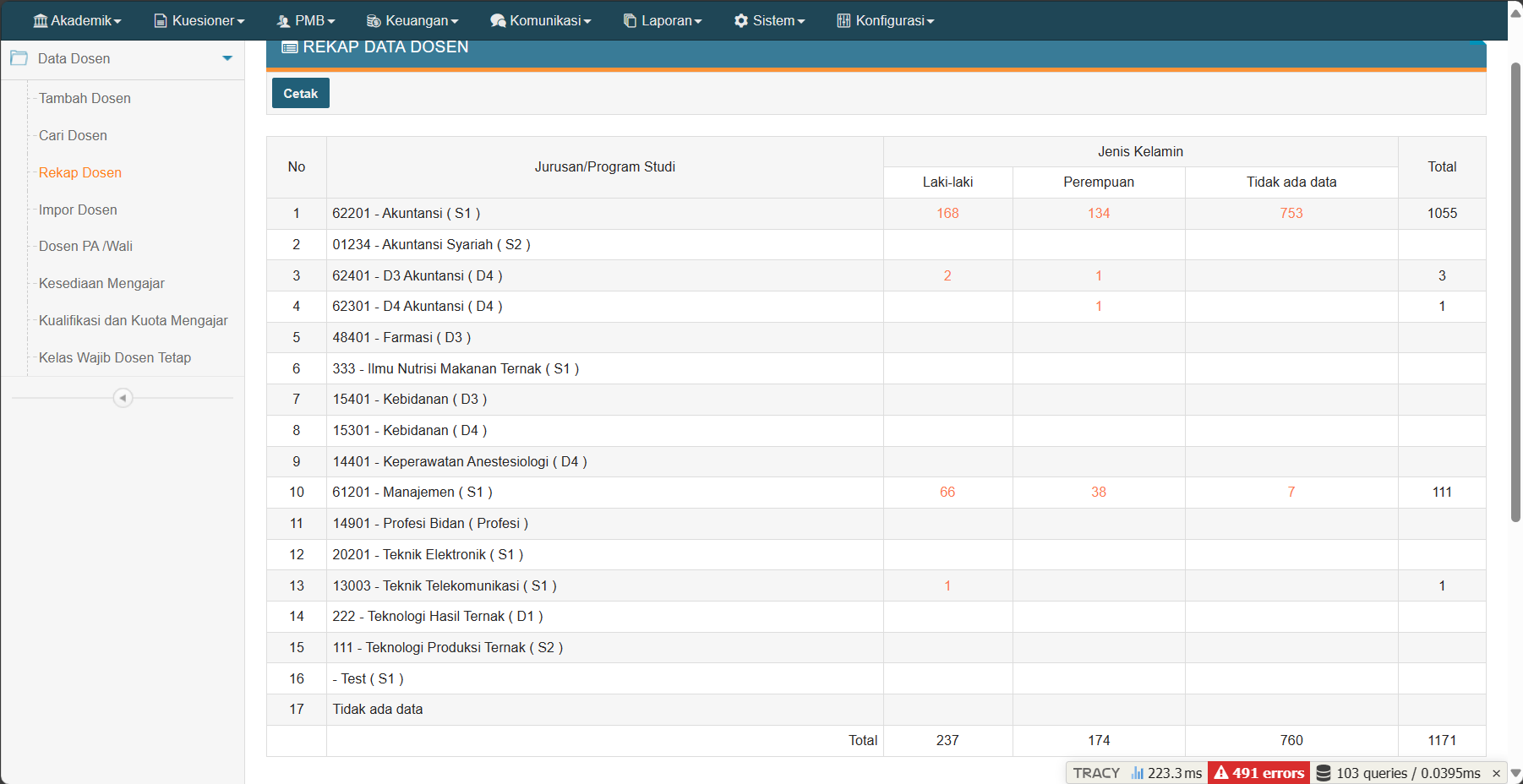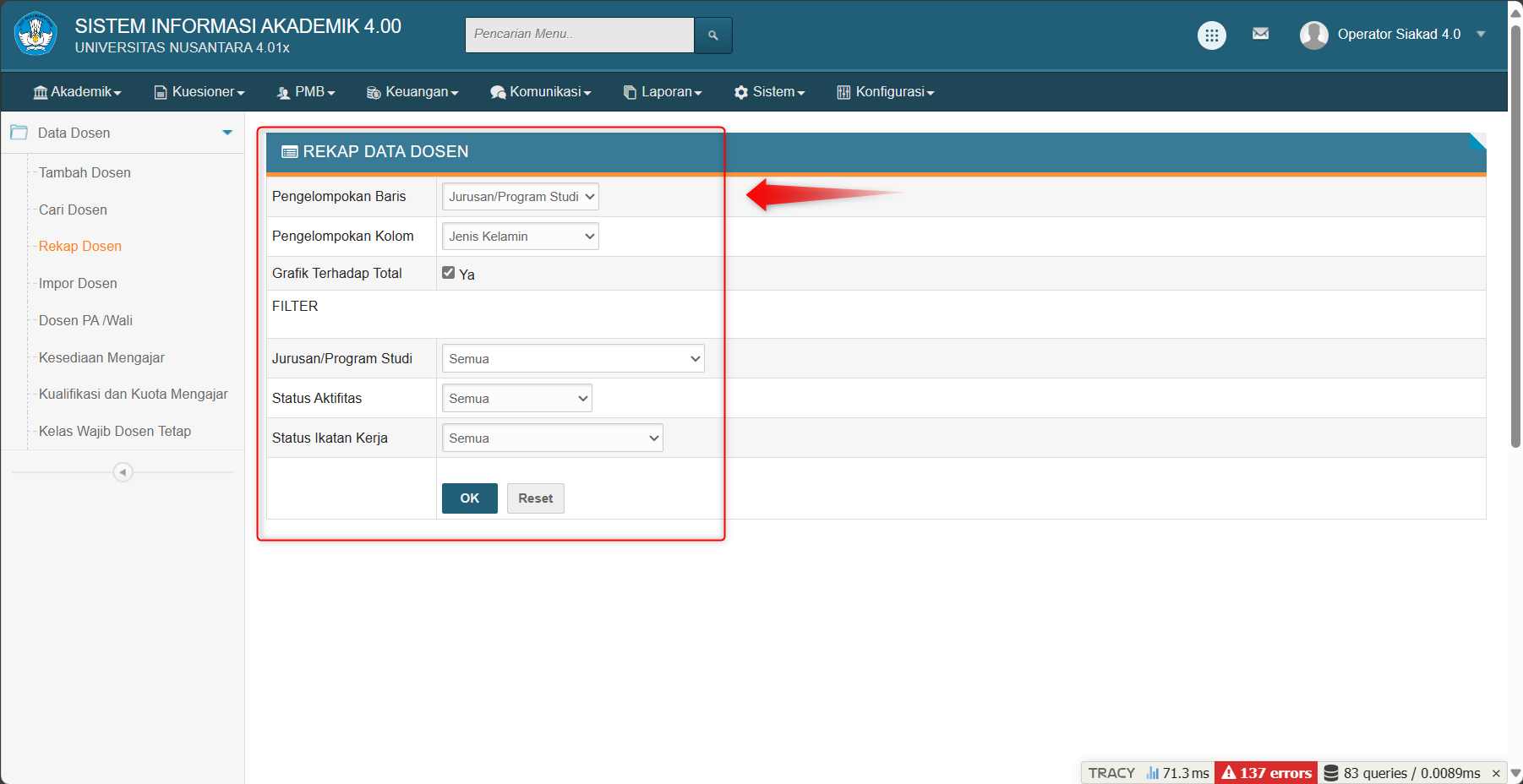 Menu rekap dosen berfungsi untuk melihat rekap data dosen berdasarkan pengelompokan baris dan kolom pada tabel yang akan dimunculkan sesuai dengan keperluan datanya