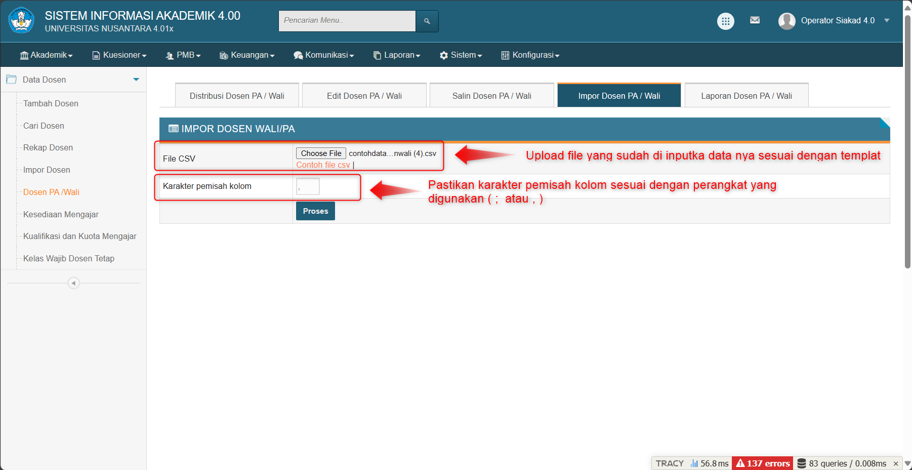 Bagaimana jika pada saat Salin Dosen PA/Wali gagal?