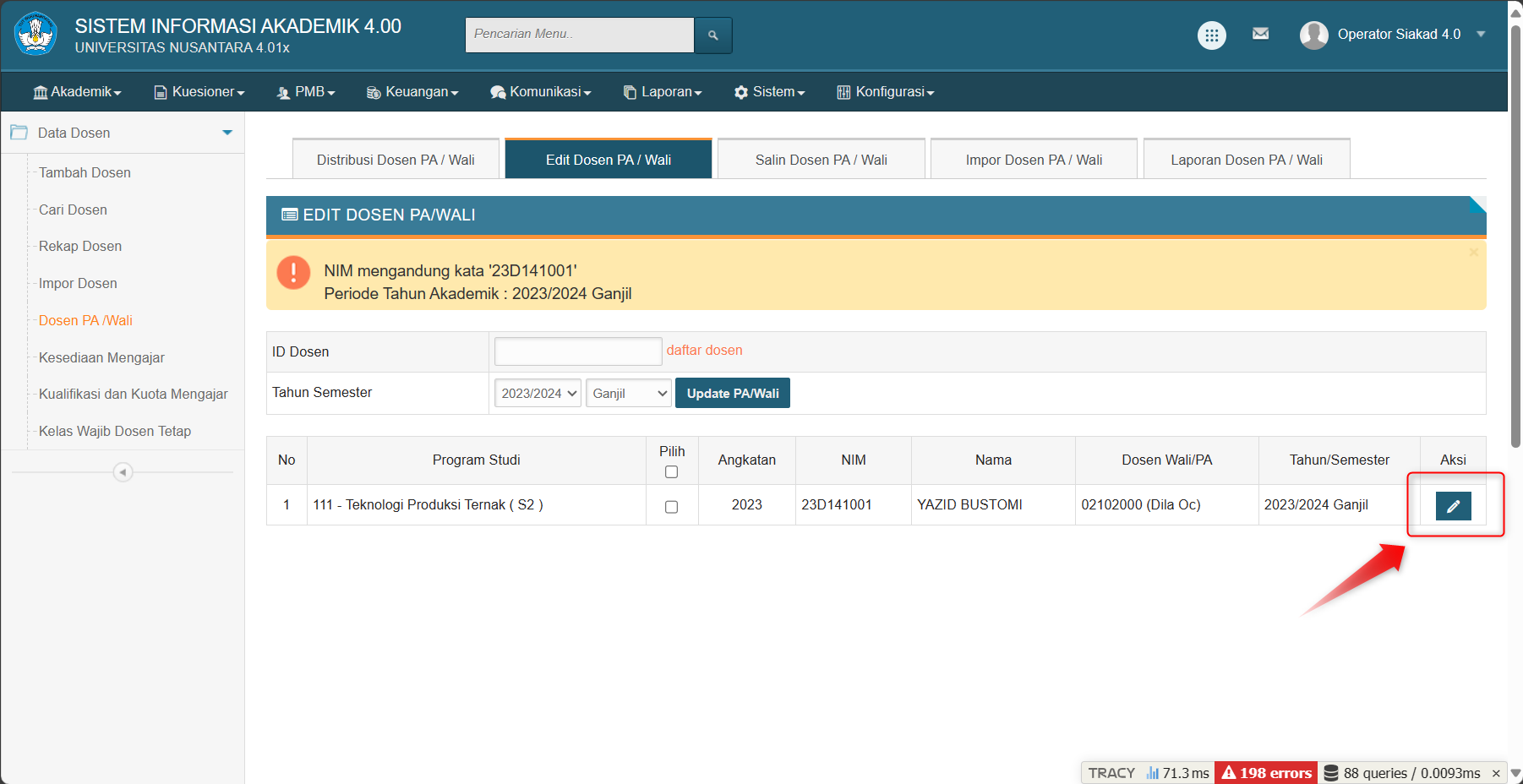 Bagaimana jika ingin mengedit dosen PA/Wali tetapi tidak ada data mahasiswanya?