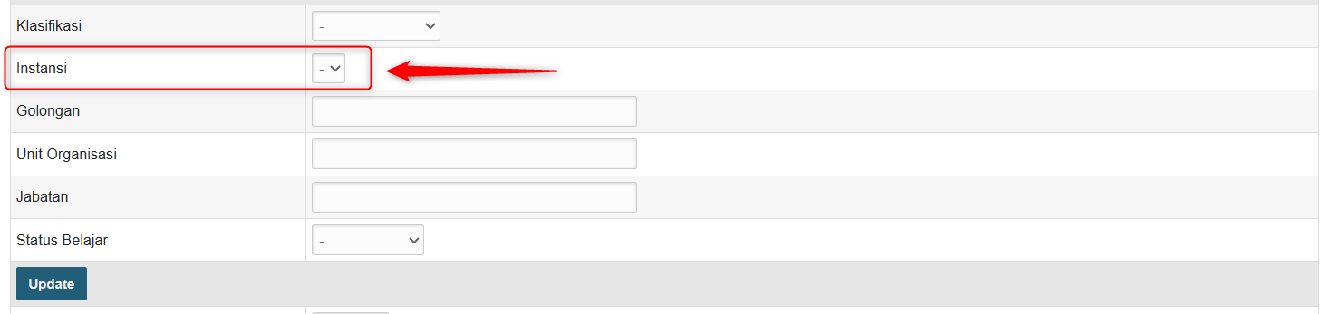 Bagaimana cara mengupdate instansi pada data mahasiswa?