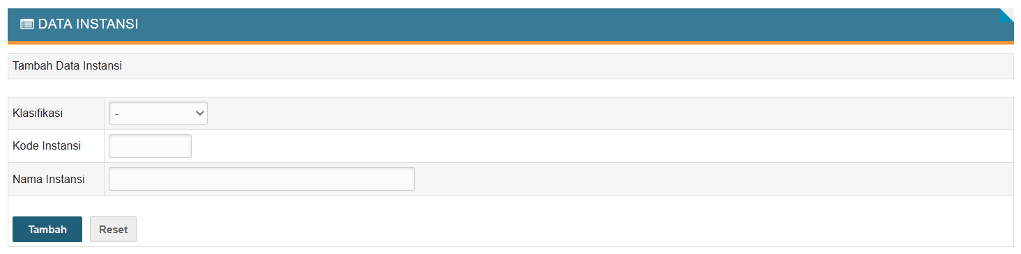 Untuk menginputkan data instansi ini dapat mengakses menu akademik > mahasiswa > instansi mahasiswa > pilih klasifikasi yang sudah dibuat sebelumnya pada menu klasifikasi mahasiswa > inputkan kode instansi > inputkan nama instansi > tambah